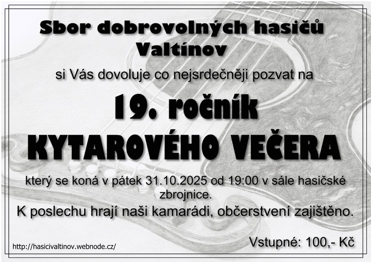 Opět zveme všechny příznivce dobré zábavy a muziky na další setkání při akci "Kytarový večer" která se koná 12.11.2022 od 19;00 hodin v sále naší hasičárny.